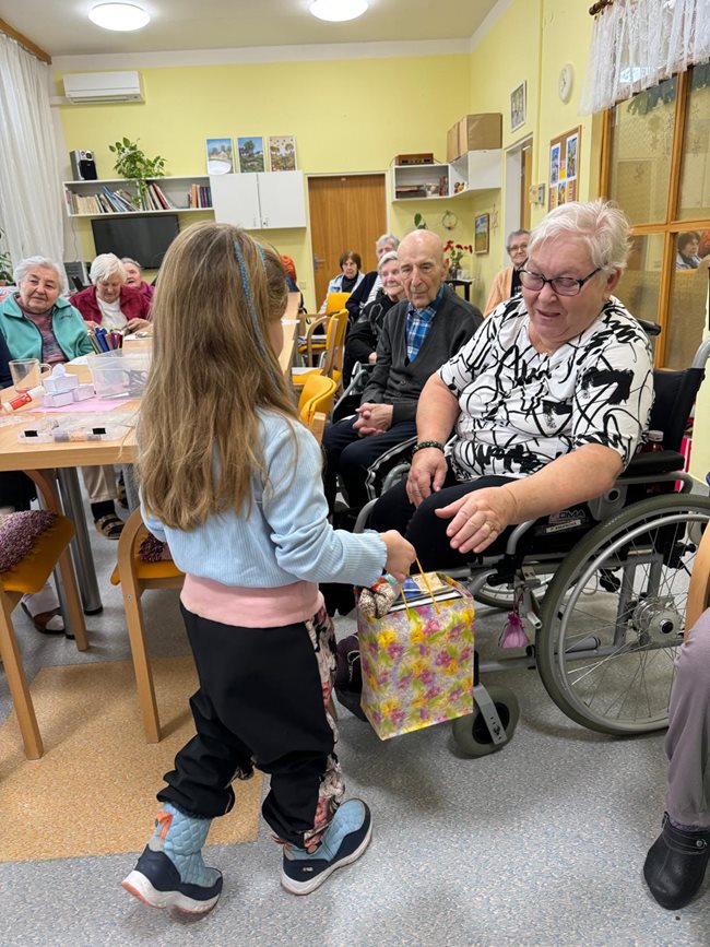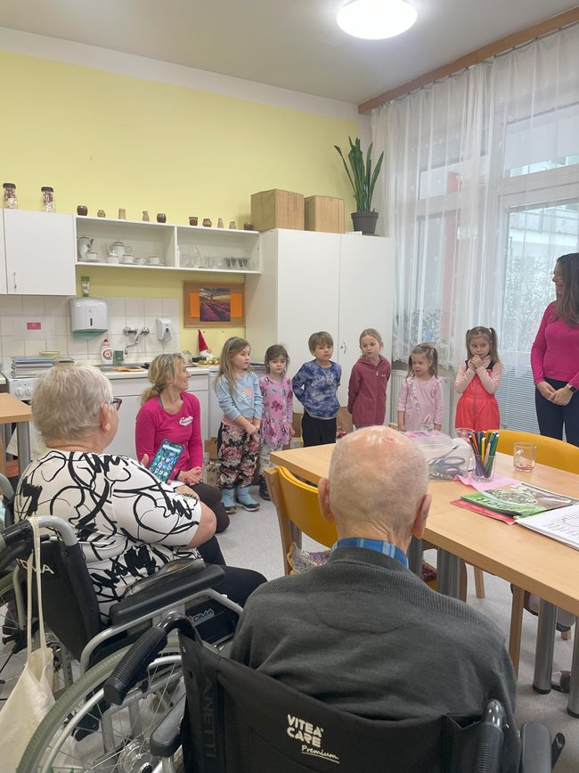 Dnes 15. ledna nás navštívily děti z česko-anglické Mateřské školy Kinder-City v Brně, které svým zpěvem a milým vystoupením zpříjemnily dopoledne našim klientům. Nejenže přinesly radost a úsměvy, ale také nádherné dárečky v rámci projektu Ježíškova vnoučata. Atmosféra byla plná vřelosti a dojetí, a my všichni jsme si společné chvíle velmi užili. Děkujeme dětem, paní ředitelce Pavle Kubíčkové, paní učitelce Evě i všem, kdo se na přípravě této krásné akce podíleli. Už teď se těšíme na další setkání!