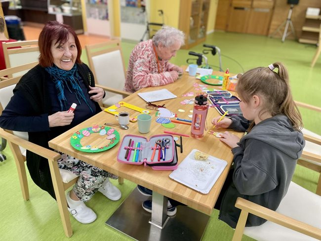 V našem domově jsme přivítali milou návštěvu – děti ze 2. třídy ZŠ Čejkovická. Společně s našimi klienty strávily dopoledne plné radosti, smíchu a tvořivé atmosféry. Malí i velcí společně vyráběli krásné jarní dekorace, které nyní zdobí prostory našeho domova. Setkání proběhlo za podpory našich aktivizačních pracovníků, kteří akci organizačně zajistili. Děkujeme dětem i paním učitelkám za návštěvu, jejich nadšení a energii, kterou našim klientům předaly. Těšíme se na další setkání!