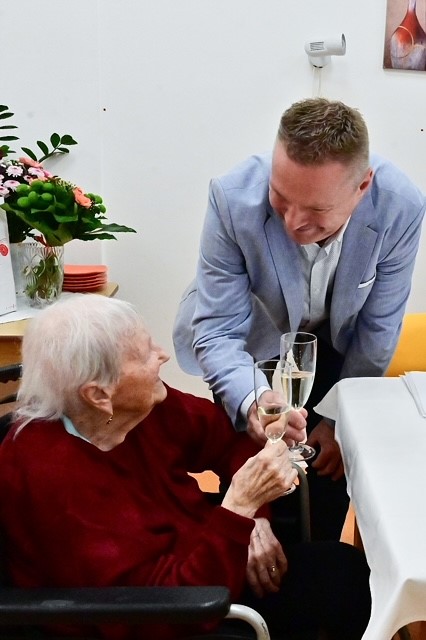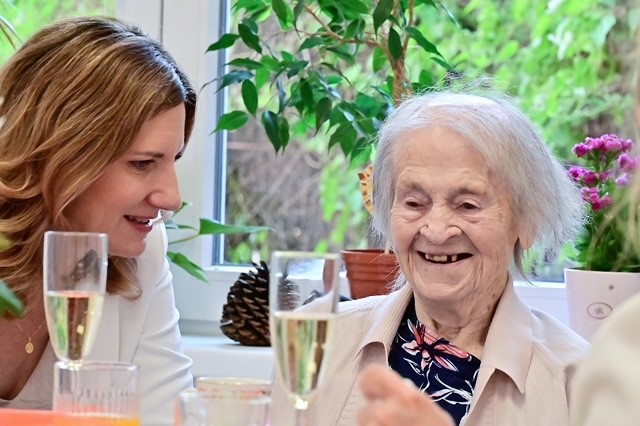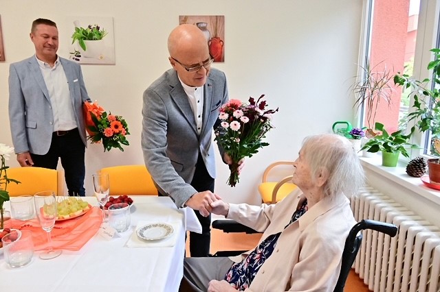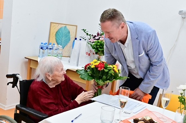 Čtvrteční den se nesl ve slavnostním duchu, neboť dvě milé klientky oslavily významné životní jubileum, jmenovitě paní Marie Schmidová a Marie Šťastová. Našim oslavenkyním přišla blahopřát také primátorka města Brna paní JUDr. Markéta Vaňková, vedoucí odboru sociální péče Magistrátu města Brna pan PaedDr. Jan Polák a náš pan ředitel Ing. Rudolf Nytl se zaměstnanci. Oběma klientkám přejeme jen to nejlepší, pevné zdraví a ať se jim stále v našem domově dobře bydlí.