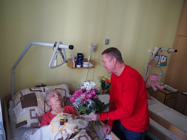 Dnes jsme spolu s naší paní Holasovou Štěpánkou a její rodinou mohli oslavit 101 let, kterých se klientka dožívá. Pan ředitel Ing. Rudolf Nytl popřál paní Holasové mnoho zdraví a předal květiny.