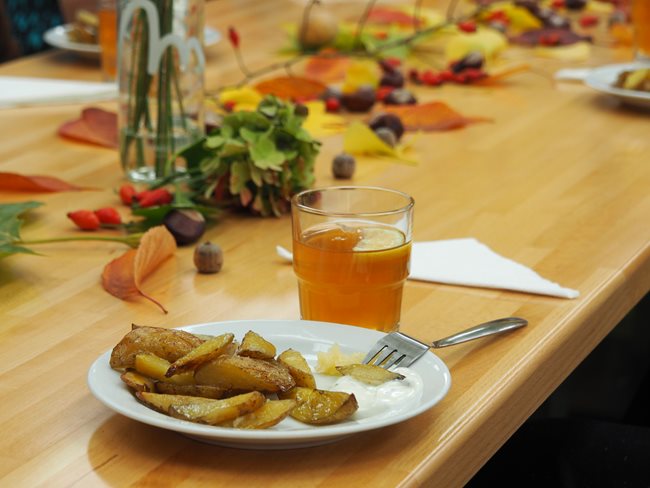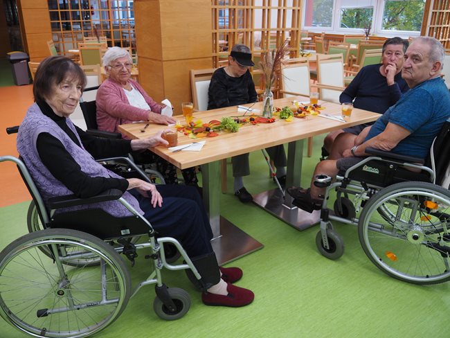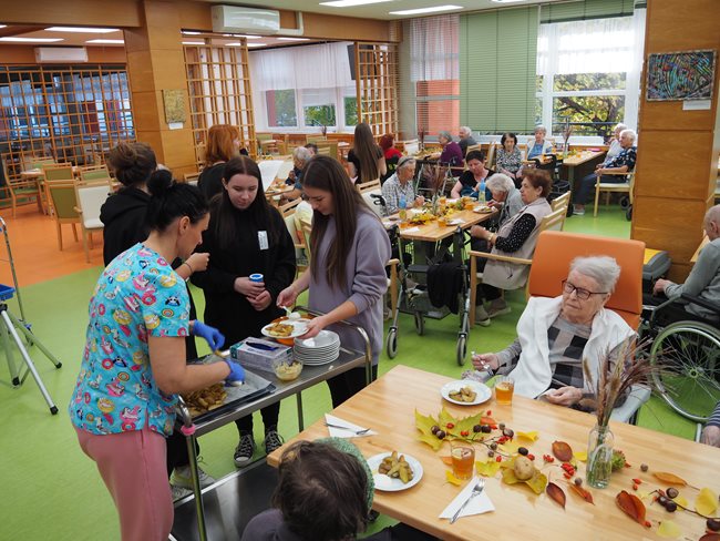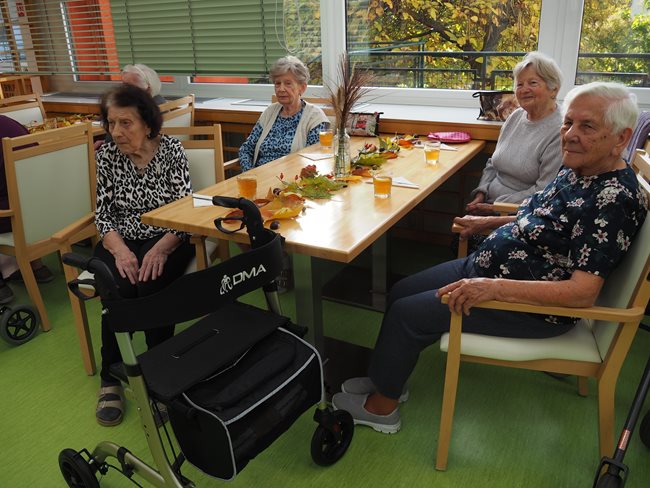 Brambory patří neodmyslitelně k podzimu. Zavzpomínali jsme si na vytahování ještě horkých brambor z ohýnků z bramborové nati, na vůni a chuť, která k pečeným bramborám patří. Povídali jsme si o jejich objevení, tělu prospěšných látkách, o přípravě různých pokrmů, o různých odrůdách a druzích brambor. Zajímavé byly různé názvy, které mají dle krajů (brambory, zemáky, erteple...) a které se objevují v křížovkách, které rádi luštíme. Ochutnali jsme brambory dochucené dle libosti česnekem, solí, kmínem..., které nám připravily aktivizační pracovnice se studentkami, které jsou u nás v domově pro seniory na praxi.