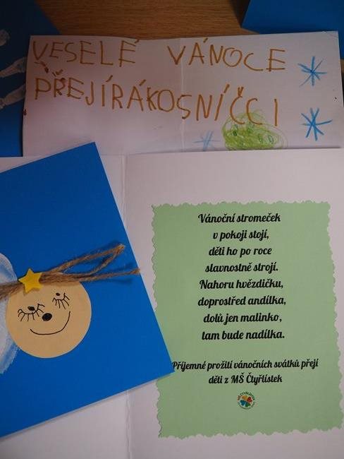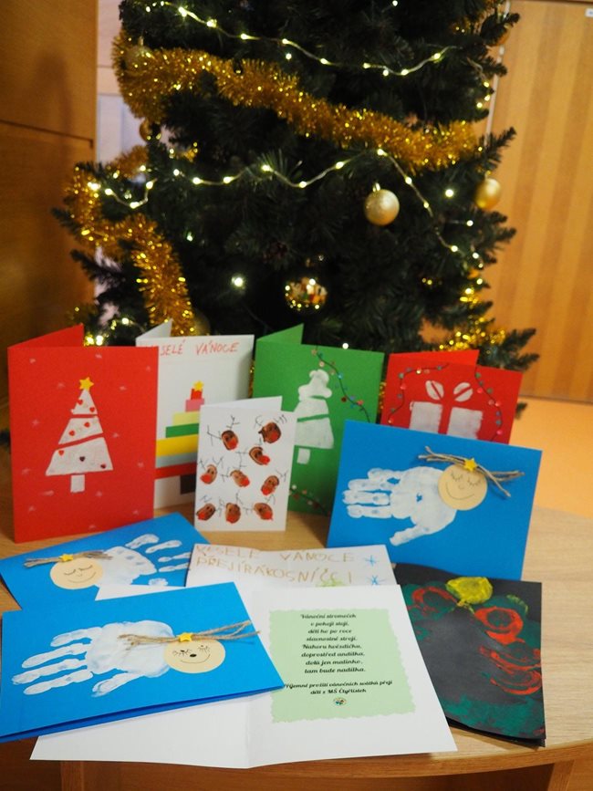 Děkujeme dětem z Mateřské školy Čtyřlístek (Horníkova) za ručně vyráběná přáníčka k vánočním svátkům, která udělala klientům radost.