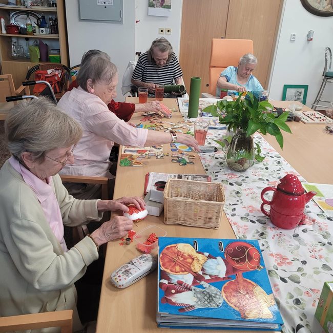 V našem domově už začaly první aktivity spojené s blížícím se adventem. Klienti průběžně tvoří dekorace, přáníčka a drobné výrobky, které budou součástí připravovaného vánočního jarmarku. Celým obdobím se nese tvořivá atmosféra, která přináší radost a příjemně strávený čas. Minulý týden jsme odstartovali kulturní program hudebním vystoupením Duo Sing, jež potěšilo klienty oblíbenými muzikálovými písněmi. Včera na něj navázala kapela Svítání, která svými melodickými skladbami vnesla do našeho domova klidnou a radostnou náladu. Program před začátkem adventu obohatila také návštěva dětí ze ZŠ Kamenačky, které si s klienty společně vyráběly vánoční ozdoby. Setkání proběhlo v milé a přátelské atmosféře a přineslo radostné mezigenerační propojení, které si všichni velmi užili. Hudba i tvoření patří u našich klientů mezi nejoblíbenější činnosti, a proto jsme rádi, že jim můžeme dopřát tyto příjemné okamžiky ještě před samotným adventem.