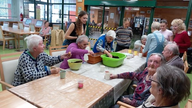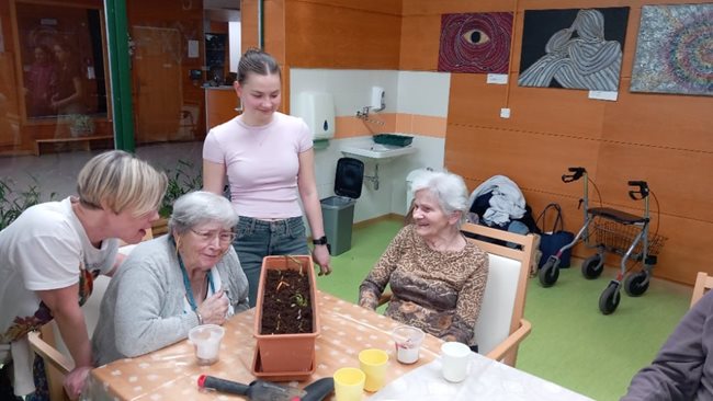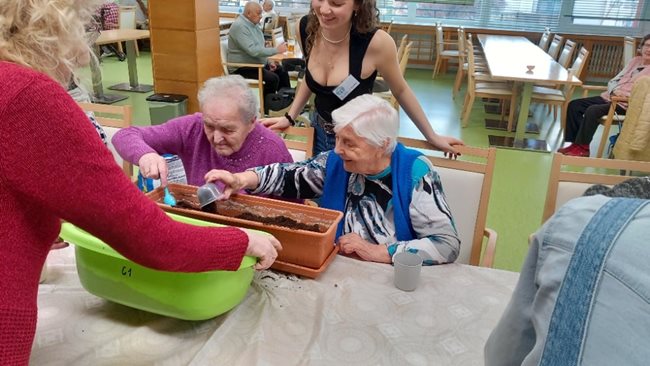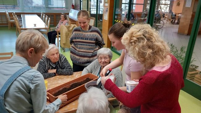 Nedávno jsme v našem domově přivítali dobrovolníky z organizace ADRA, kteří mezi nás přišli s otevřeným srdcem a ochotou zapojit se do společných aktivit. V příjemné a přátelské atmosféře jsme společně sázeli česnek a řeřichu, povídali si, smáli se a sdíleli radost ze vzájemného setkání. Z obyčejného odpoledne se staly výjimečné chvíle plné lidské blízkosti a laskavé energie. O to větší radost máme z toho, že mezi dobrovolníky byli i mladí a šikovní studenti, kteří svým nasazením a respektem ke starším lidem přinesli do našeho domova svěží vítr a naději do dalších generací. Děkujeme dobrovolníkům za jejich čas, ochotu i srdečný přístup. Těšíme se na další společná setkání!