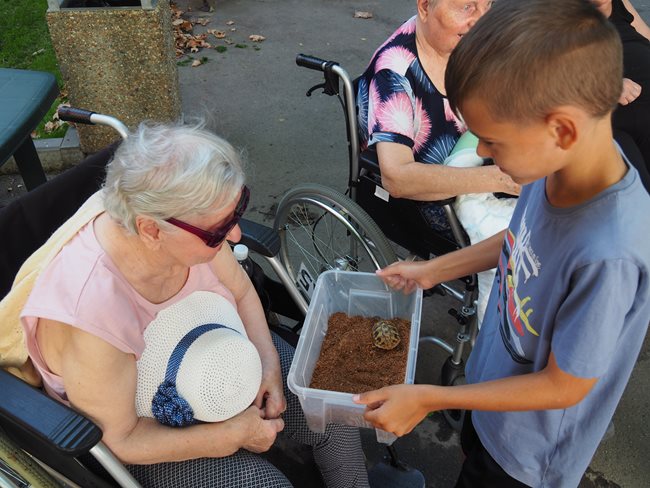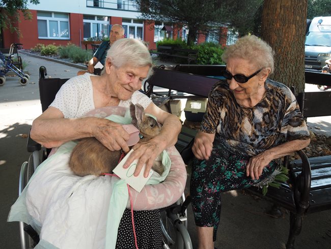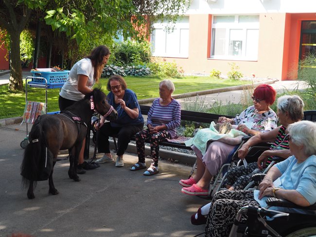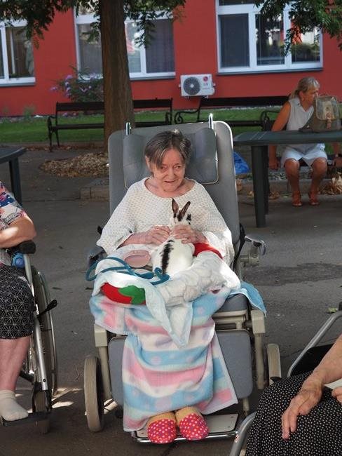 Dnes jsme měli na návštěvě terapeutického koníka s jeho přáteli. Navštívila nás opět Romanka a králíčci Charlie, Jasmínka a Bertík. Zajímavé bylo si prohlédnout velké africké šneky (oblovky žravé), kteří také na návštěvu s Romankou přijeli. Protože máme tento druh šneků také u nás v domově v teráriu, nebyli jsme jejich velikostí překvapení, ale zjistili jsme, jak moc dokáží být "rychlí".