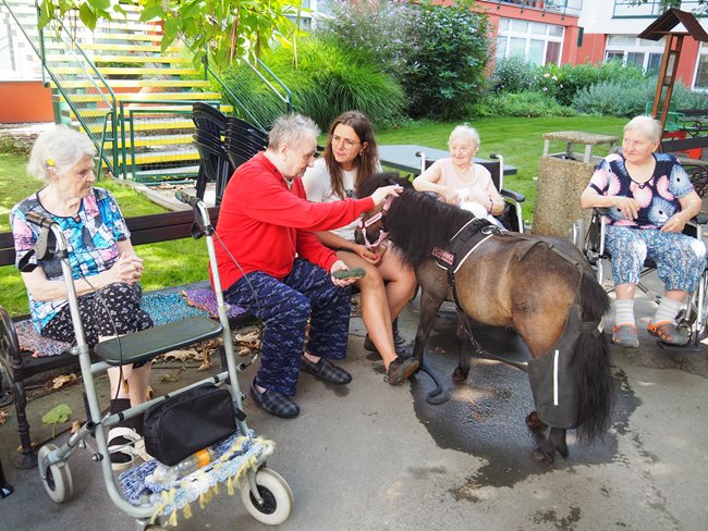 Od nadačního fondu Českého rozhlasu a jejich sbírky Ježíškova vnoučata jsme obdrželi dárkový poukaz na čtyři návštěvy terapeutického koníka Emila a jeho zvířecích přátel a toto byla již třetí návštěva.