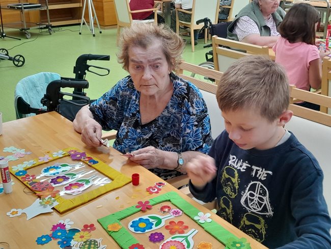 Ve středu nás navštívily děti ze ZŠ Kamenačky a společně s našimi klienty prožily dopoledne plné radosti, tvoření a milých slov. Děti si připravily krátké básničky, kterými potěšily přítomné, a pak už se společně pustily do výroby drobných dekorací. Atmosféra byla velmi srdečná – smích, vzpomínky a tvůrčí nápady spojily generace v příjemně stráveném čase. Děkujeme žákům i jejich paním učitelkám za návštěvu a těšíme se na další společné chvíle!