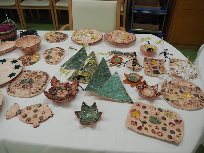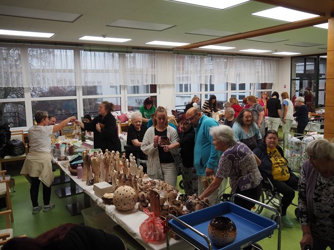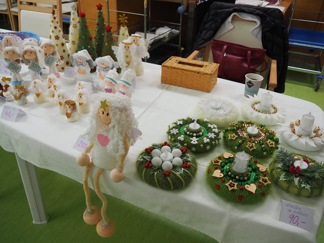 Včera u nás proběhl vánoční jarmark, který se mimořádně vydařil. Výrobky našich klientů obdivovali nejen zaměstnanci, ale také rodinní příslušníci a známí. Akce probíhala po celý den v příjemné a sváteční atmosféře. Odpoledne program zpestřilo vystoupení kapely Teddybears, která potěšila klienty pohádkovými písněmi a vánočními koledami. Po celou dobu měli klienti možnost ochutnávat lahodný punč a perník, který s péčí připravily naše aktivizační pracovnice. Vánoční jarmark přinesl adventní náladu.