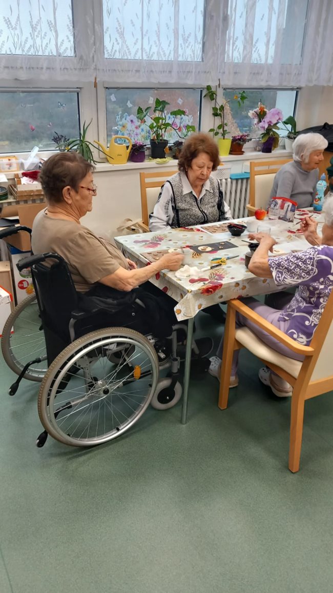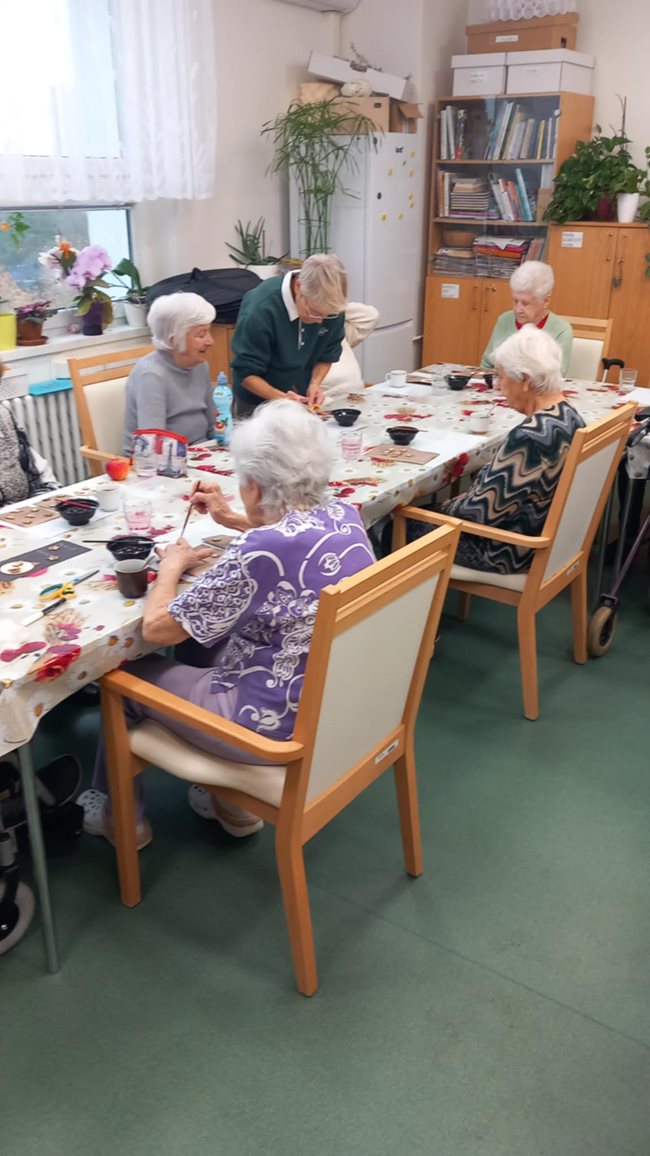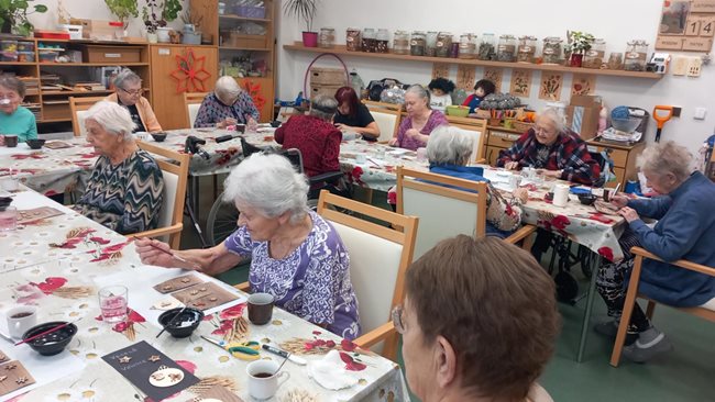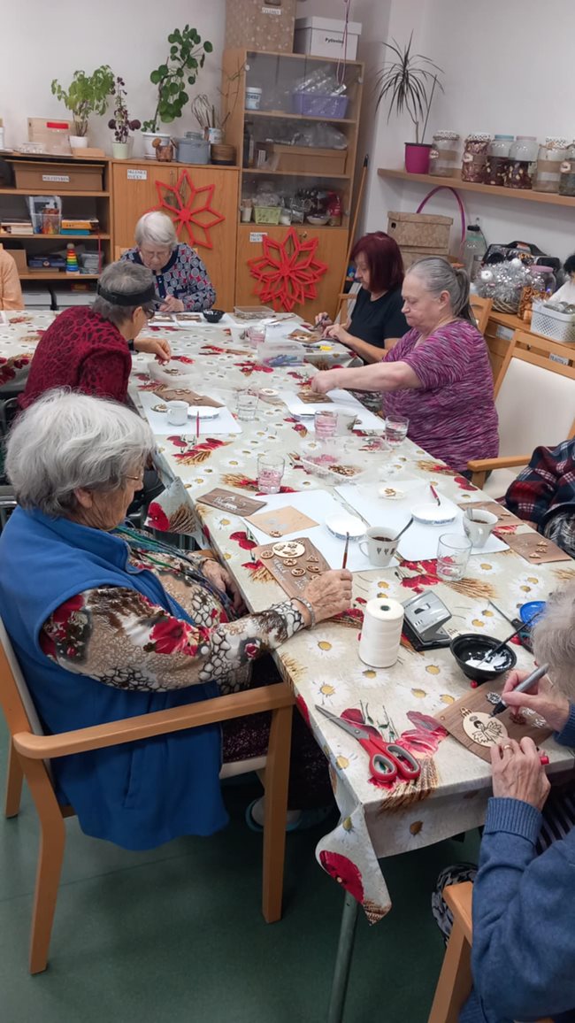 Dnes klienti v rámci zahradní terapie vyráběli vánoční přáníčka z dýhy. Aktivita byla zaměřená na práci s přírodním materiálem, podporu kreativity a jemné motoriky. Klienti se už těší na další setkání.