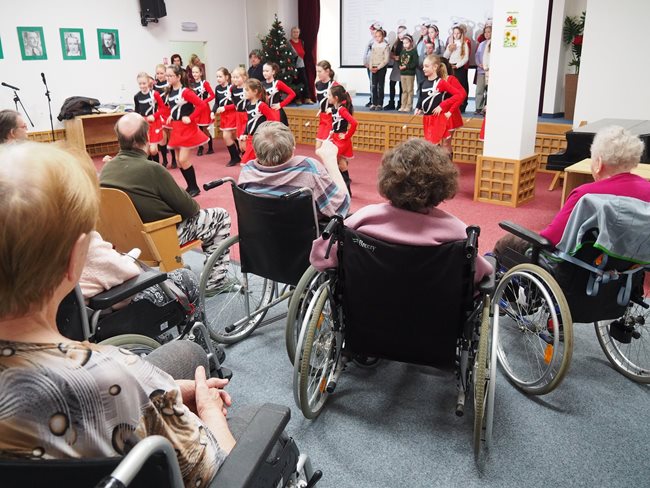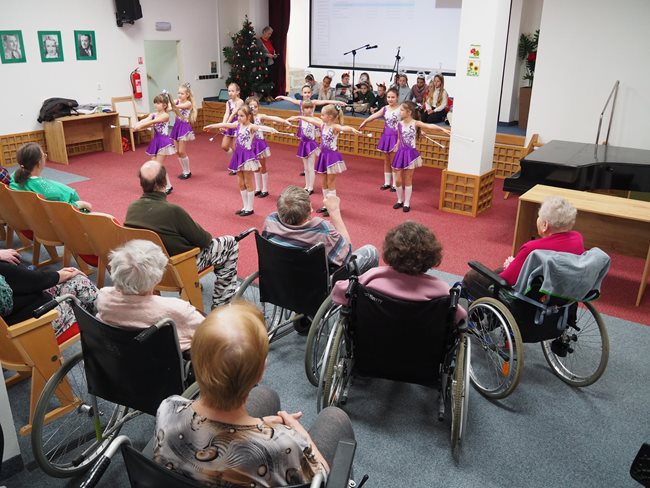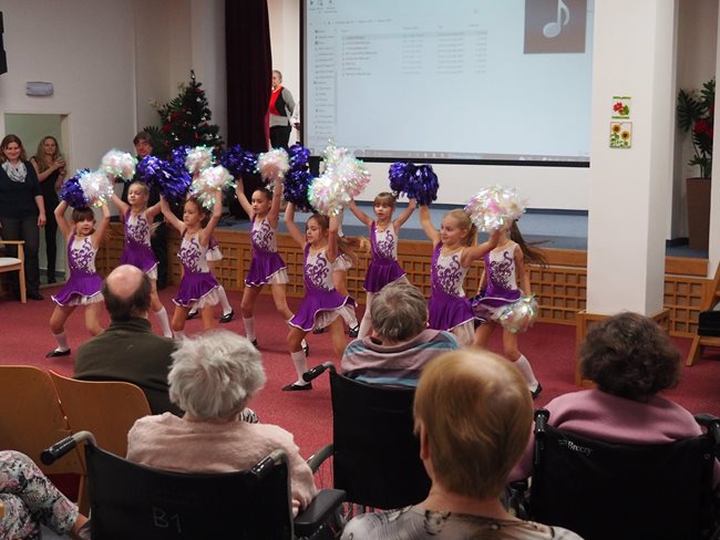 Na veselé vánoční vystoupení dětí z Líšně a Vinohrad přišla klientům popřát požehnané svátky vánoční a mnoho zdraví a spokojenosti do nového roku starostka městské části Vinohrady paní Mgr. Jitka Ivičičová a místostarosta městské části Líšeň pan Jan Skotal. Děti zazpívaly vánoční a čertovské písničky a mažoretky nám předvedly své umění.
