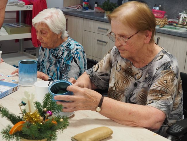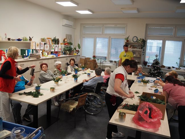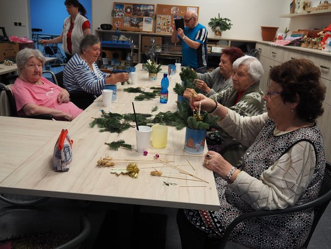 Klienti se během vánočně laděného tvořivého odpoledne společně s aktivizačními pracovníky pustili do výroby dekorací. V příjemné atmosféře vznikly krásné vánoční ozdoby, které nyní zdobí naši společnou jídelnu. Každý klient si zároveň svou dekoraci odnesl i do pokoje, aby si mohl vánoční náladu užívat i ve svém osobním prostoru.