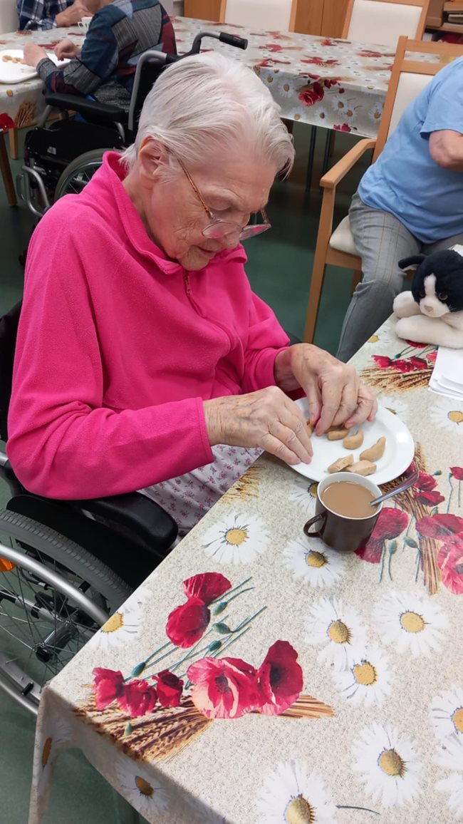 Klienti si společně ozdobili vánoční stromeček a pustili se do pečení cukroví, které provonělo celý domov. Celým odpolednem se nesla příjemná vánoční atmosféra, sdílené vzpomínky a radost z příprav na nejkrásnější období roku.