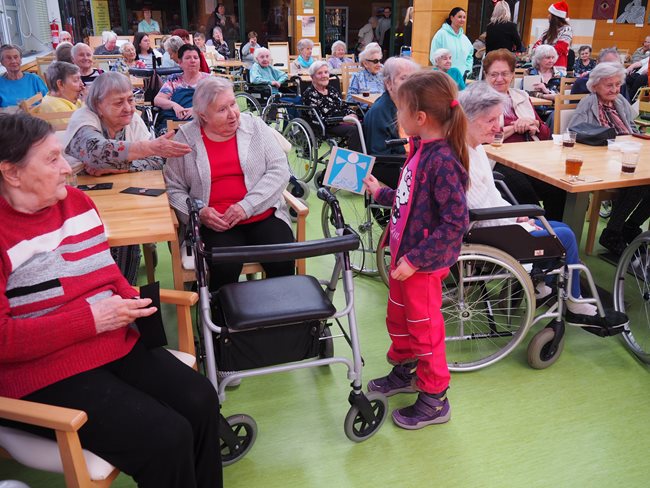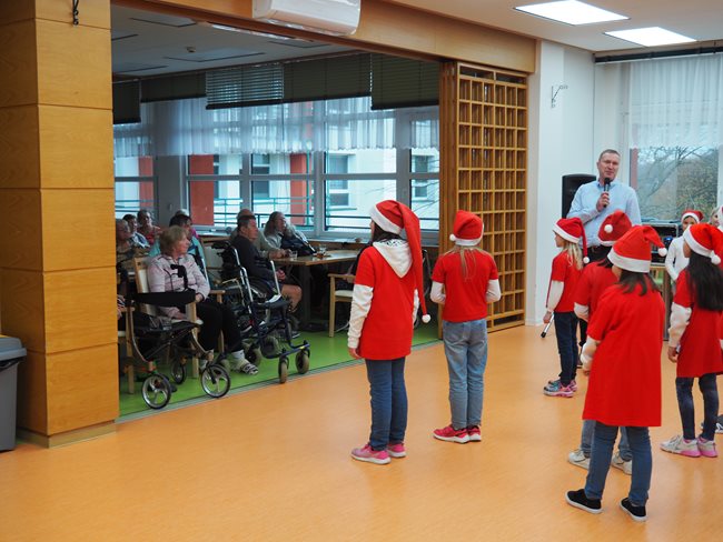 Školní družina ZŠ Masarova pořádá každý rok charitativní akci "Stánky". Letos byl výtěžek ve výši 15.112,- Kč věnován našemu Domovu pro seniory k nákupu materiálu do aktivizačních klubů. Děti nám přišly osobně dar předat. Společně jsme si zazpívali koledy. Líbila se nám taneční vystoupení, která děti připravily se svými učitelkami. Klienty potěšila dětmi vyráběná přání k Vánocům.