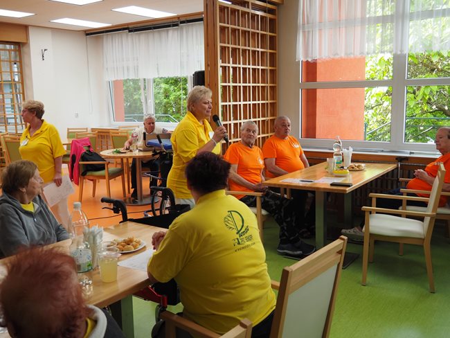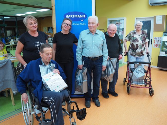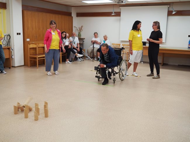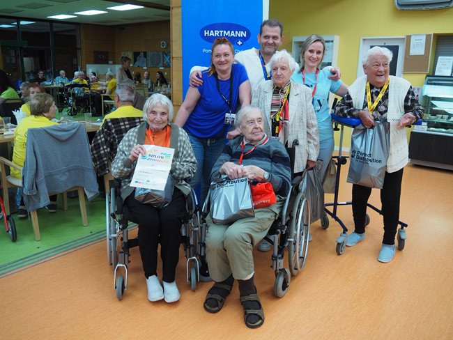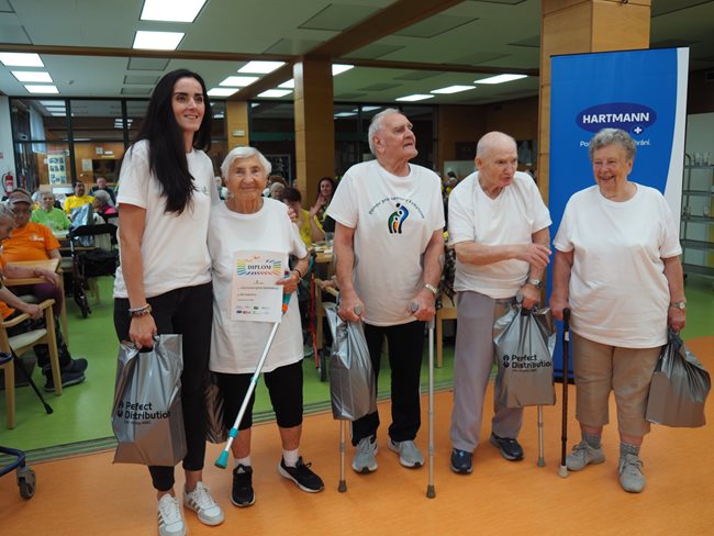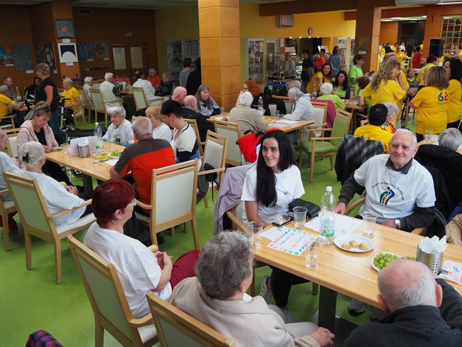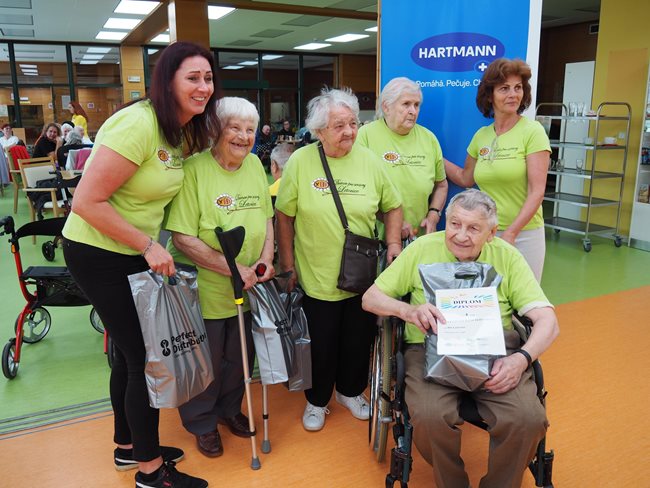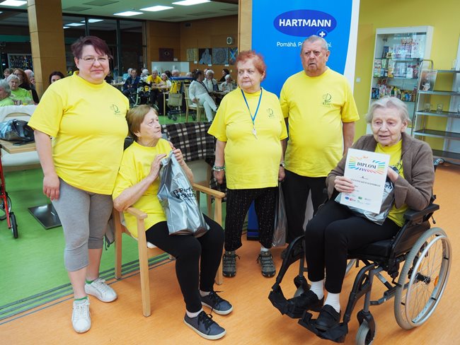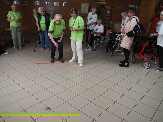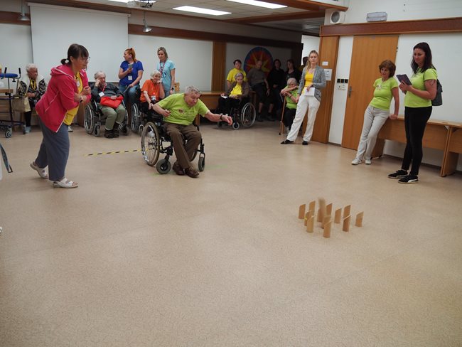 Letos jsme se již po osmé sešli v tradičním květnovém termínu při sportovním klání pro seniory, které pořádá náš domov. Potěšilo nás, že tohoto přátelského soutěžního klání se účastní týmy seniorů, které se k nám každý rok vrací, ale potěšila nás i účast nováčků. Počasí nám neumožnilo využít naši velkou zahradu, a tak jsme využili společné prostory v našich budovách. Slavnostního zahájení se ujala paní zástupkyně ředitele Bc. Hudečková a s disciplínami soutěžní družstva seznámila hlavní pořadatelka paní Bc. Horková. Sportovci se posilnili kávou, koláčky a ovocem, zvolili vhodnou taktiku a vyrazili soutěžit. Vzhledem k tomu, že jsme potřebovali sedm disciplín pro jedenáct týmů umístit do dvou podlaží, obdrželi soutěžící také mapku. Již samotné čtení mapky bylo dobrodružnou disciplínou, při které mohli týmy využít i své dovednosti z dob, kdy jejich členové navštěvovali různé turistické oddíly. Dobrou zprávou je, že všichni soutěžící se na konci shledali opět v hale u svých stolů. Členové družstev si navzájem předávali informace o tom, jak kdo často a jakým způsobem trénoval, zda zvolenou taktiku a natrénované uplatnili dnes při plnění disciplín a ve veselé náladě očekávali vyhlášení výsledků. Po sportovním výkonu našim soutěžícím také přišly vhod opečené klobásky a koláčky.