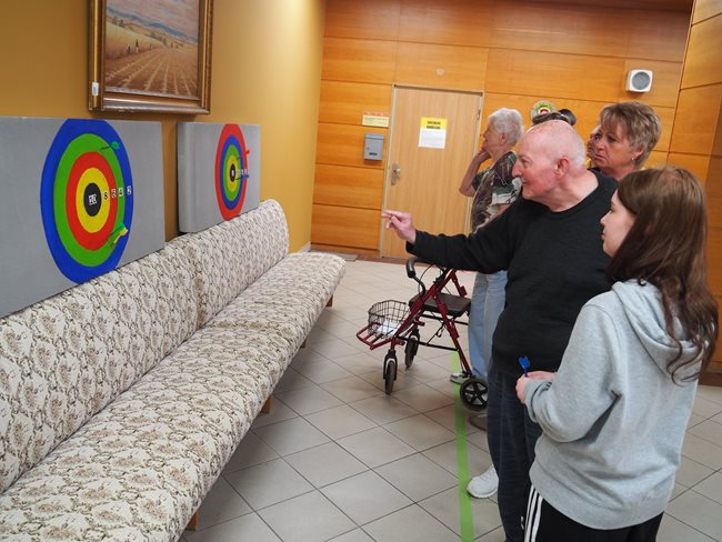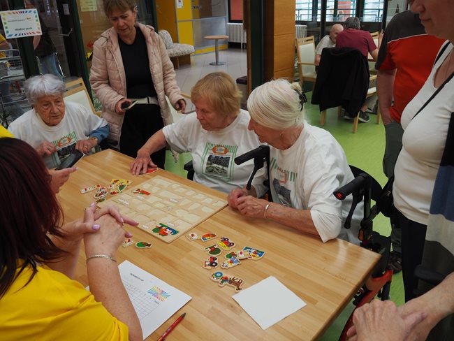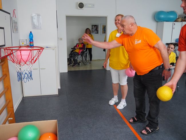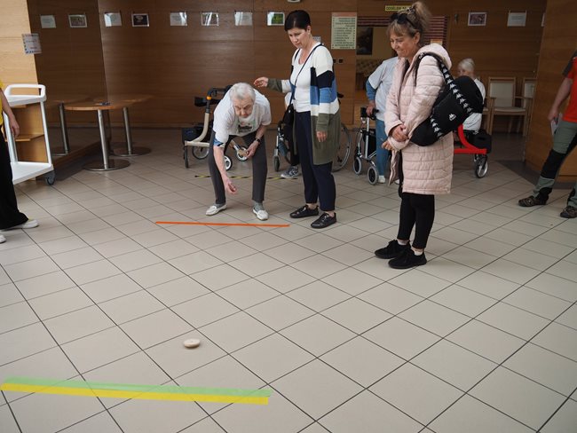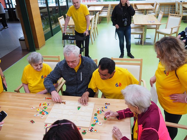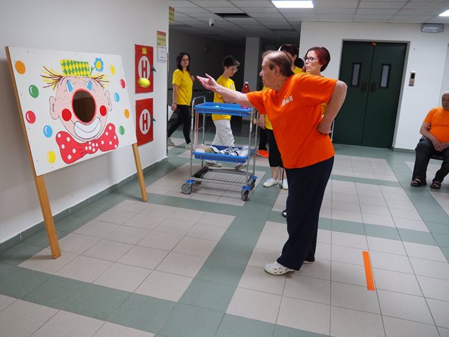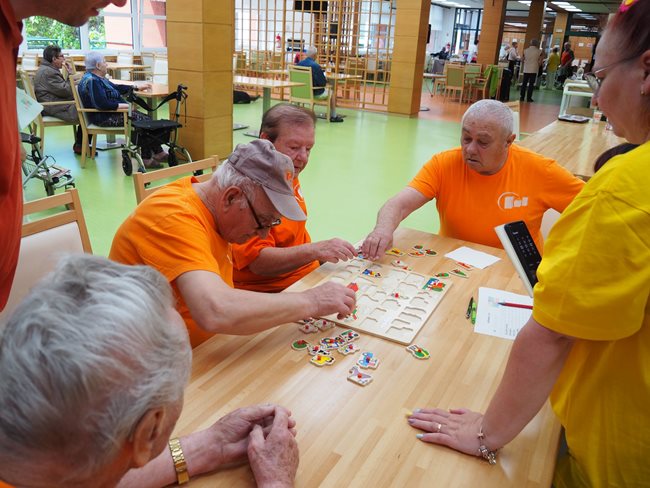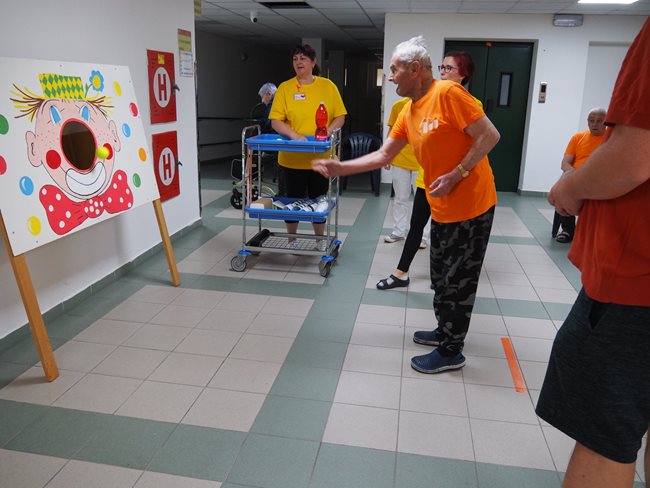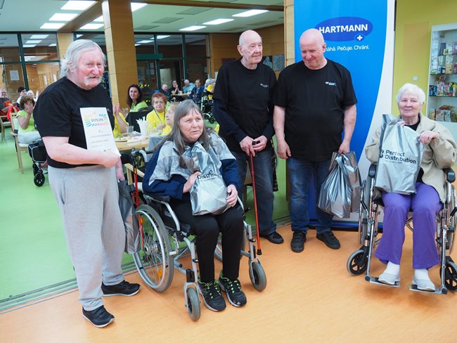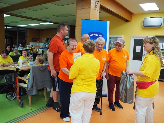 Letos jsme se již po osmé sešli v tradičním květnovém termínu při sportovním klání pro seniory, které pořádá náš domov. Potěšilo nás, že tohoto přátelského soutěžního klání se účastní týmy seniorů, které se k nám každý rok vrací, ale potěšila nás i účast nováčků. Počasí nám neumožnilo využít naši velkou zahradu, a tak jsme využili společné prostory v našich budovách. Slavnostního zahájení se ujala paní zástupkyně ředitele Bc. Hudečková a s disciplínami soutěžní družstva seznámila hlavní pořadatelka paní Bc. Horková. Sportovci se posilnili kávou, koláčky a ovocem, zvolili vhodnou taktiku a vyrazili soutěžit. Vzhledem k tomu, že jsme potřebovali sedm disciplín pro jedenáct týmů umístit do dvou podlaží, obdrželi soutěžící také mapku. Již samotné čtení mapky bylo dobrodružnou disciplínou, při které mohli týmy využít i své dovednosti z dob, kdy jejich členové navštěvovali různé turistické oddíly. Dobrou zprávou je, že všichni soutěžící se na konci shledali opět v hale u svých stolů. Členové družstev si navzájem předávali informace o tom, jak kdo často a jakým způsobem trénoval, zda zvolenou taktiku a natrénované uplatnili dnes při plnění disciplín a ve veselé náladě očekávali vyhlášení výsledků. Po sportovním výkonu našim soutěžícím také přišly vhod opečené klobásky a koláčky.