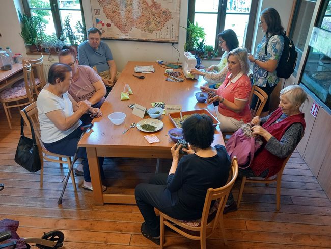Léto v zahradě. Z bylinek jsme si namíchali čaj pro dobrou náladu a nahřívací obsah do pytlíku s luštěninami a levandulí, které nám pracovnice Lipky dala do ušitých látkových sáčků. Vyzkoušeli jsme si masáž rukou v hrachu a míčcích, zahráli si na Popelku při třídění luštěnin, ochutnali klíčící bylinky (mikrogreens) a vyslechli si zajímavé vyprávění o bylinkách.