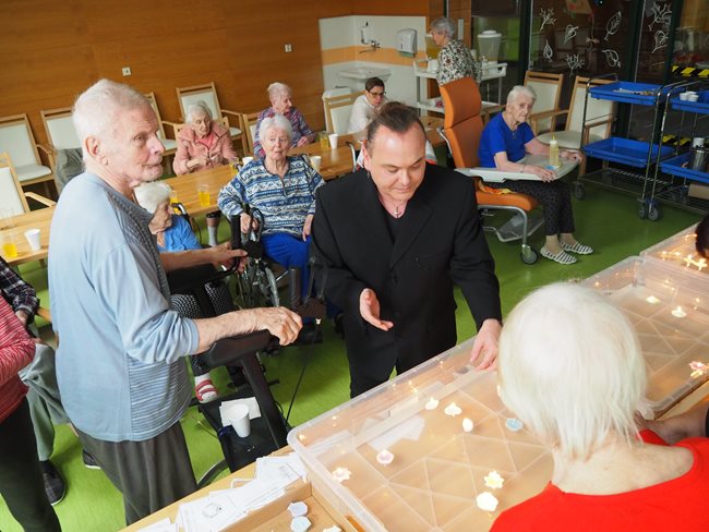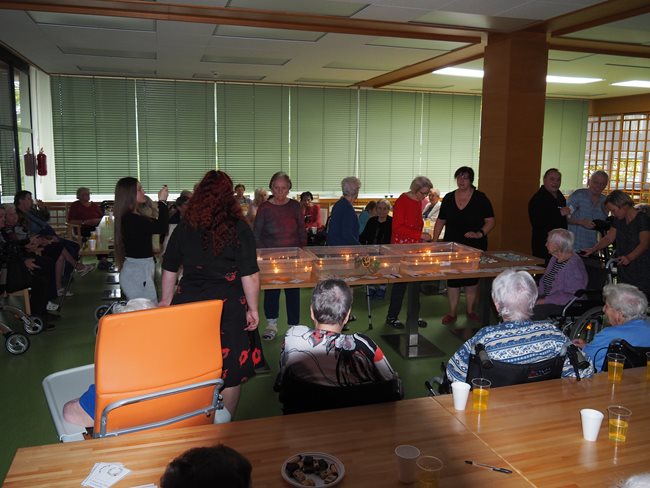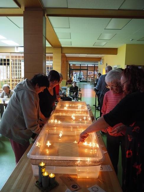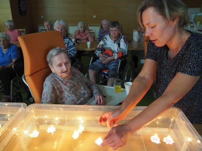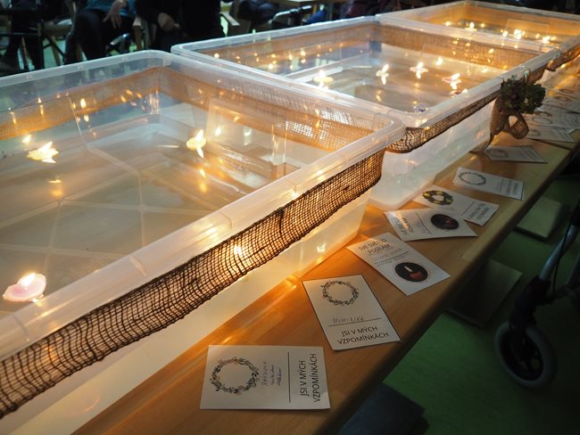 Společně jsme zavzpomínali na naše milované, kteří již s námi nemohou být na tomto světě a které nemůžeme na hřbitovech navštívit a zapálit tam za jejich duše svíčku. Naši aktivizační pracovníci nám připravili prostředí pro to, abychom mohli vzpomínat u nás v domově pro seniory. Vybrali jsme si svíčku, zapálili ji a nechali plout. Napsali jsme si na vzpomínkovou cedulku jméno, za koho svíčka je (tzv. obětinka). Kdo chtěl, přidal se ke společné modlitbě. Poslouchali jsme povídání o památce všech věrných zesnulých a o zvycích, které k tomuto svátku patří a které se krajově liší.