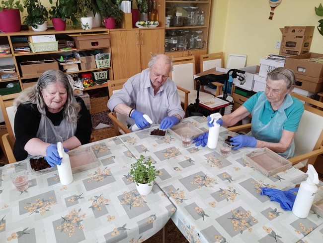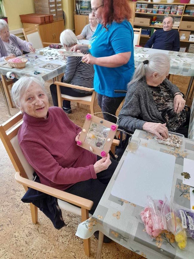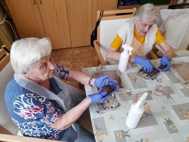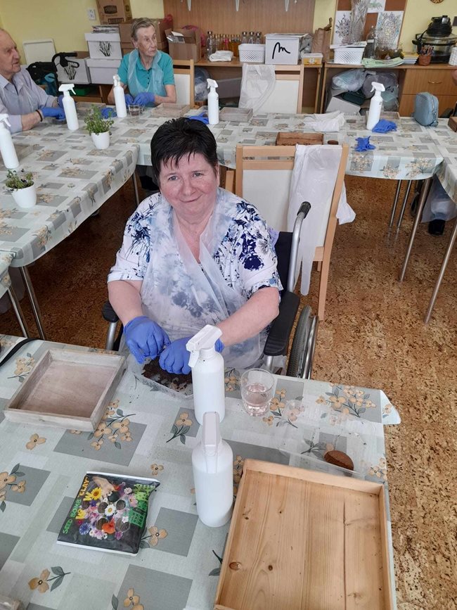 V zahradní terapii jsme si vytvořili obrázky ze sušených květin a zasázeli si květinové bomby.