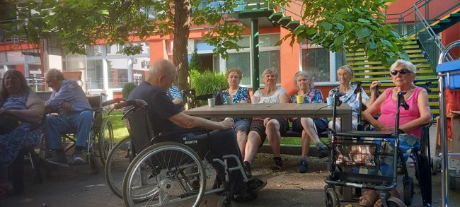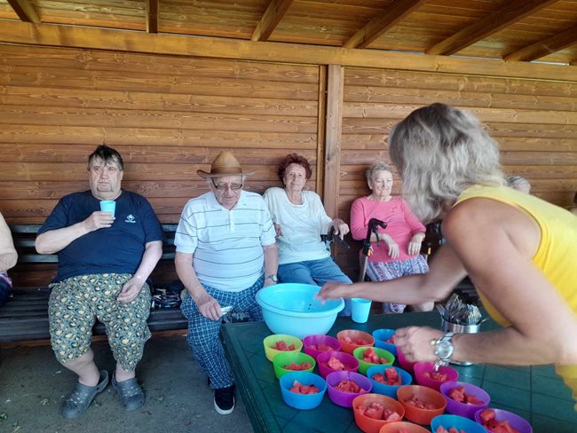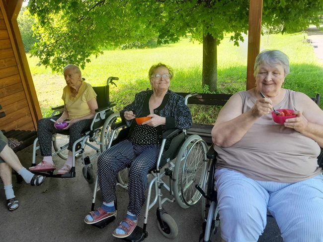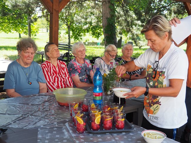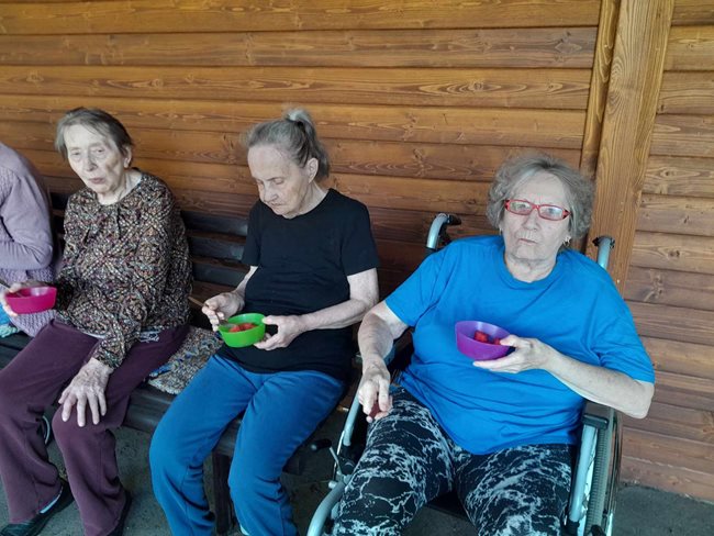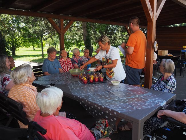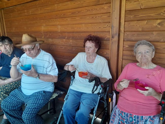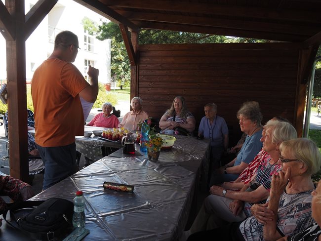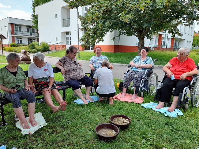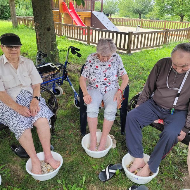 V zahradní terapii jsme sesbírali a dali sušit bylinky, které se nám budou hodit v zimě na léčivé čaje až dorazí rýma. Po práci jsme si zpříjemnili tropické dny relaxací s vonnými oleji a bylinkami v koupeli a masážemi s odpočinkem.