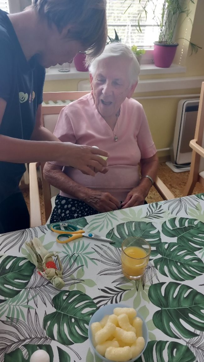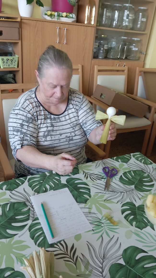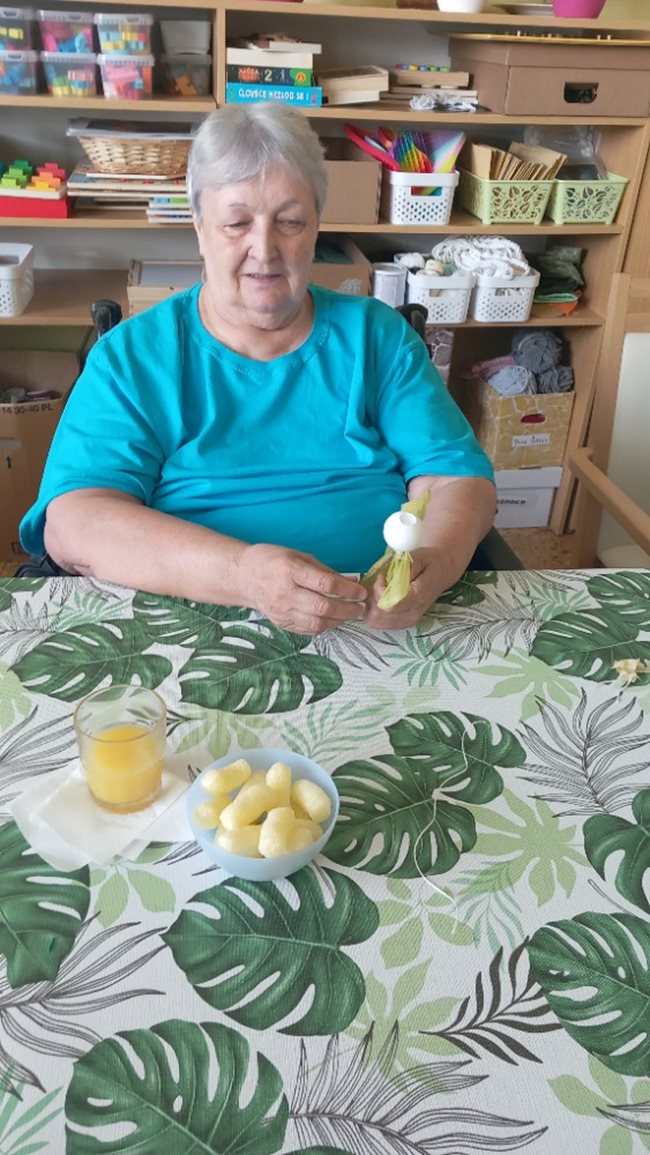 V zahradní terapii jsme si povídali o kukuřici, jejím využití v kuchyni a přínosu pro naše zdraví. Ochutnali jsme různé kukuřičné pochutiny a velký úspěch měla výroba panenek z kukuřičného šustí.