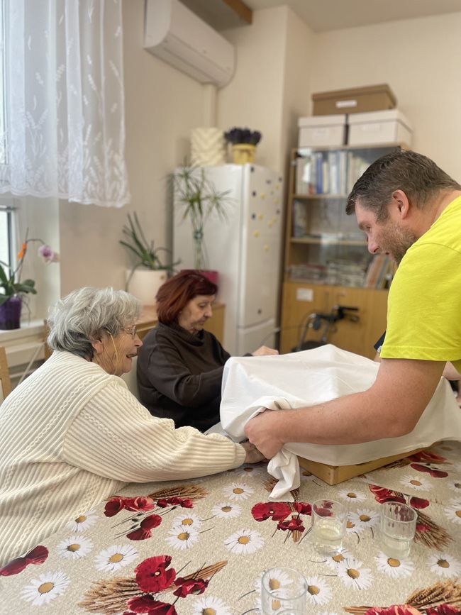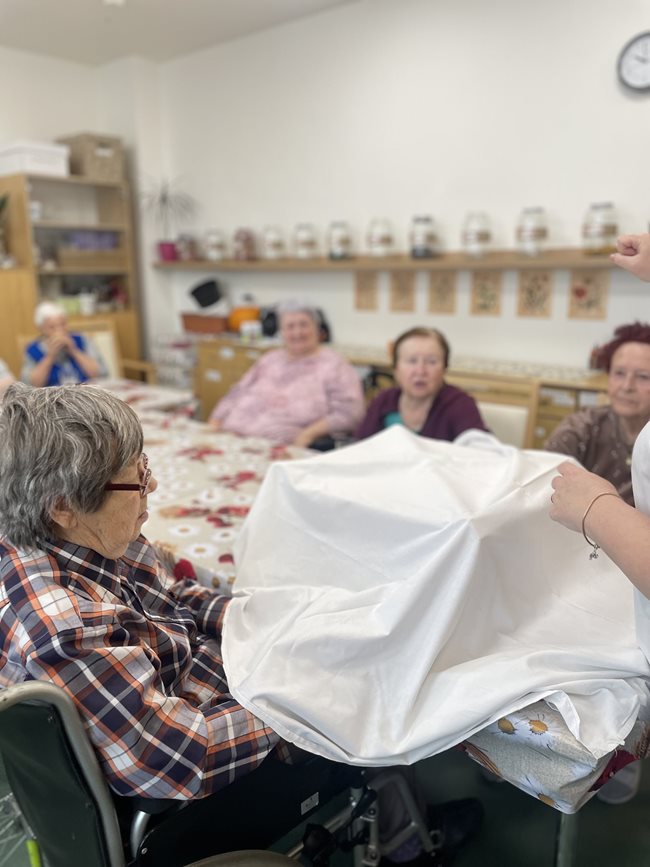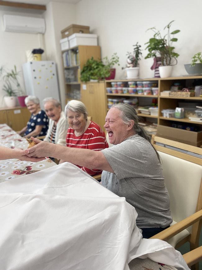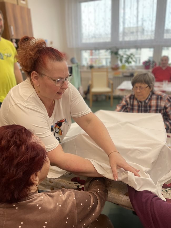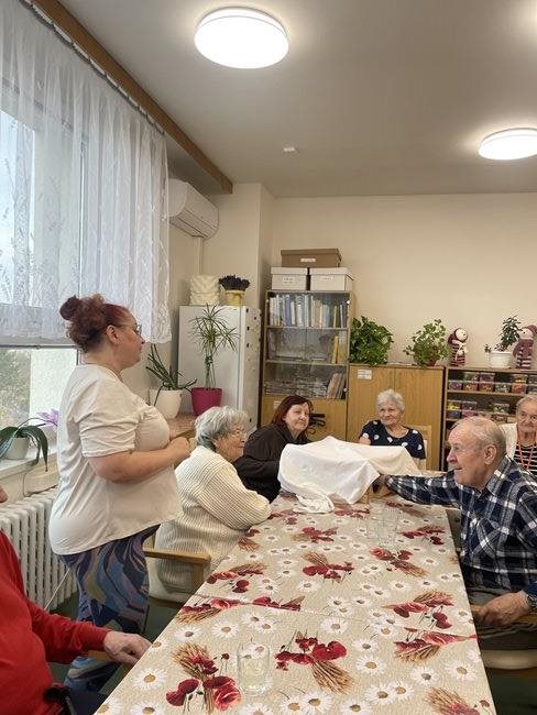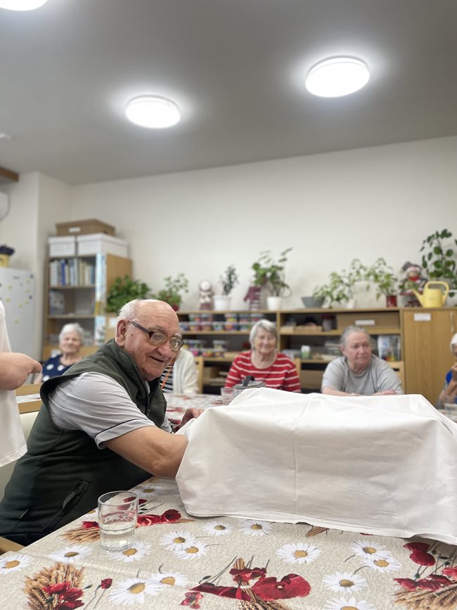 Zahradní terapie je jednou z oblíbených aktivizačních činností, která našim klientům přináší radost. Od začátku nového roku jsme ji rozšířili a nyní se koná každý týden a ve větším rozsahu. Poprvé v lednu jsme se zaměřili na poznávání chutí a smyslů. Klienti ochutnávali různé druhy ovoce a zeleniny, vnímali jejich chuť, vůni i strukturu. Podpořili si tak nejen smyslové vnímání, ale také vzpomínky spojené s jídlem a přírodou. Kromě ochutnávání si klienti vyzkoušeli i poznávání přírodních materiálů hmatem. V rukou si osahali různé druhy šišek, kůry stromů, kamínky, ale i zeleninu. Tato aktivita přinesla nejen radost z objevování, ale také podporu motoriky a stimulaci paměti. Práce se smysly je důležitou součástí aktivizace, která přispívá k celkové pohodě a duševnímu zdraví našich klientů. Jsme rádi, že rozšíření zahradní terapie byla přijata s nadšením a budeme v ní pokračovat i nadále.