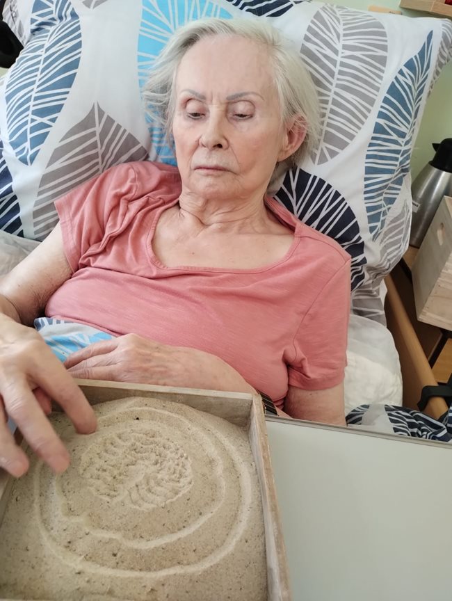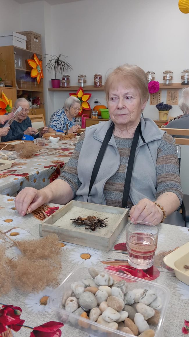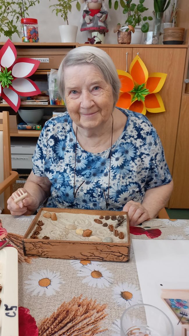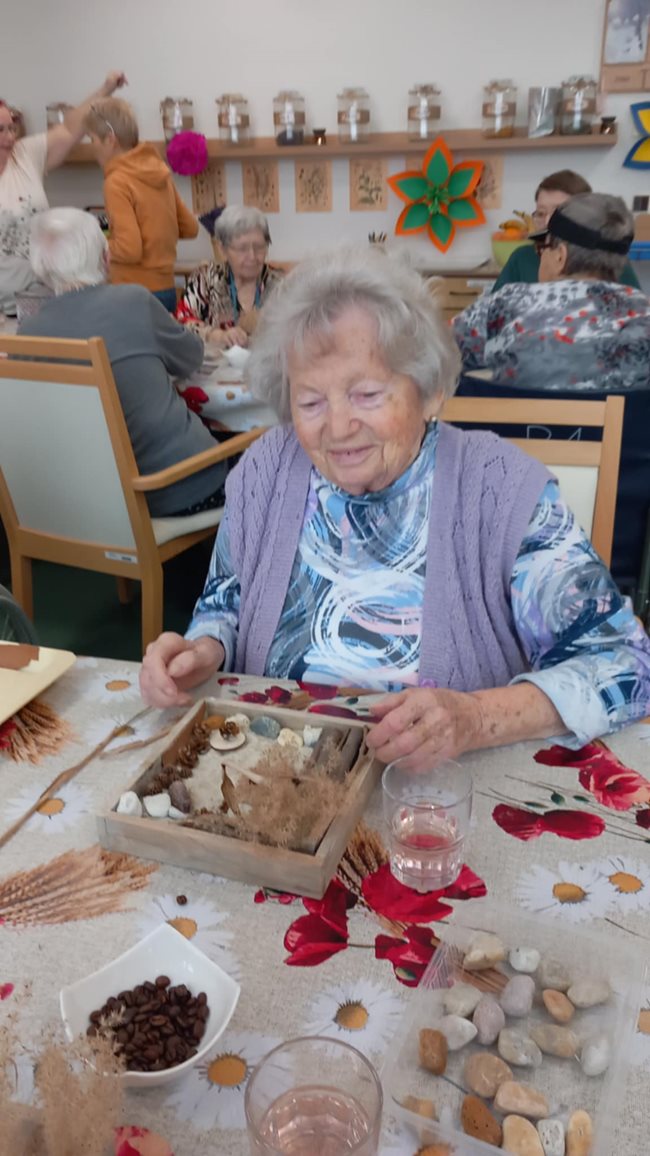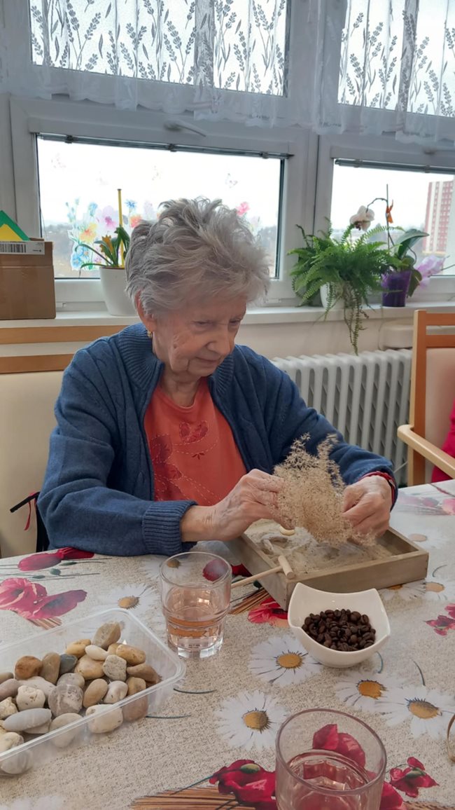 V našem domově proběhla individuální aktivizace zaměřená na jemnou motoriku, relaxaci a kontakt s přírodou – tvorba