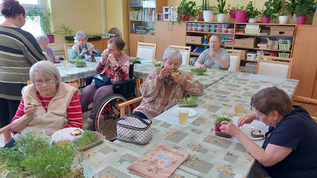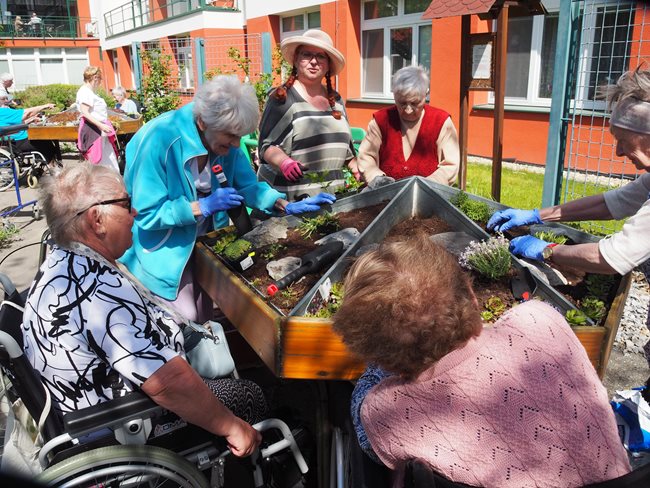 S bylinkami a plody, které v zahradě klienti a aktivizační pracovníci vypěstují, pracují v zahradní terapii. Vyrábí různé masti, marmelády, omáčky k masu, čaje a jiné produkty. Věnují se také teorii šetrného pěstování, seznamují se s historií a různými druhy léčivých darů naší zahrady. Spolupracujeme se školským zařízením pro enviromentální vzdělávání - Lipka, kam se jezdíme také podívat. Zahradní terapie se těší u našich klientů velké oblibě.
